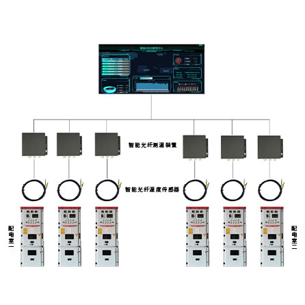 荧光光纤测温系统是针对高压开关柜、刀闸开关、电缆接头、变压器等高压电力设备因绝缘老化或接触不良所引发故障和火灾的早期预测而设计的。具有电绝缘、本征安全、不受电磁干扰等特性,所以传感器的探头可以直接以接触的方式安装在被测点上,“零距离”的监测开关触头、电缆接头的温度异常来预测可能发生的故障,防止电气火灾的发生。